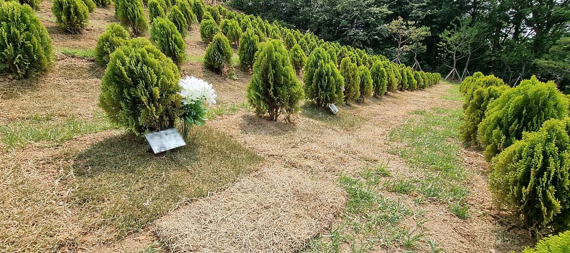 4. 잔디때위에 비석 또는 표지석을 올린다.